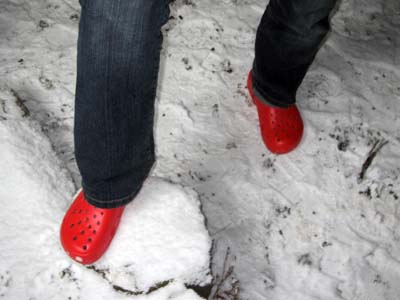 穴だらけの靴で